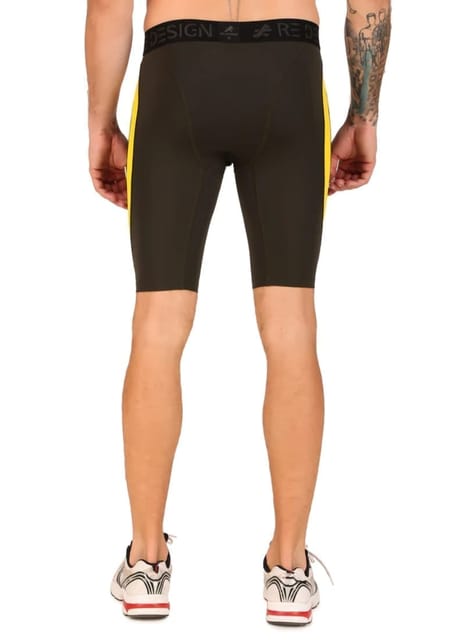 Men's Nylon DC Curve Compression Shorts and Half Tights For Men (Green/Yellow)