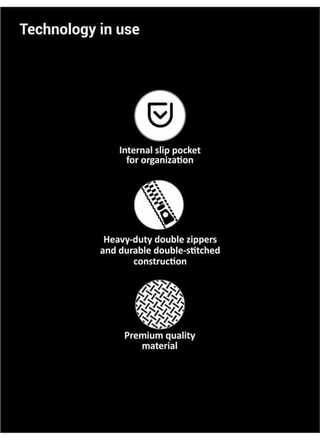 Durable zippers and enhanced by strong stitching at major stress points provide long-lasting durability against daily activities