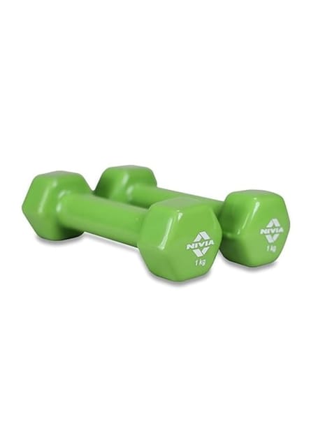 67518ed78d6d69003e85c64cNivia Vinyl Dumbbells for Hand Weights, Strength Training and Gym Equipment Set of 1 Kg Dumbbells (Green)