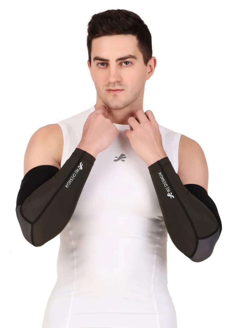 Nylon Compression Arm Sleeves (Black/Dark Grey/Green)