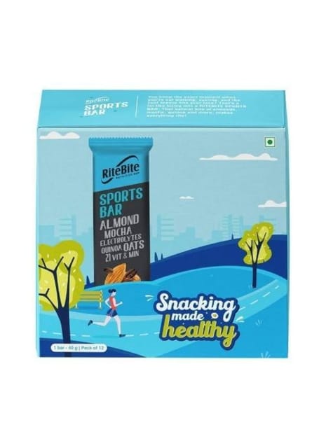 Recharge yourself with the deliciously healthy RiteBite Sports bar. Packed with the goodness of almonds, mocha, oats, and electrolytes this bar is sure to leave you energised.